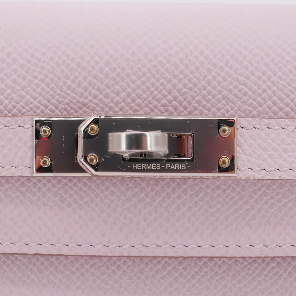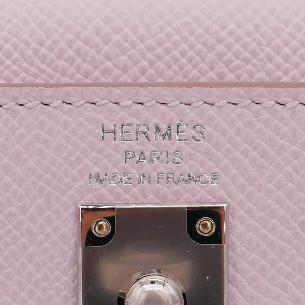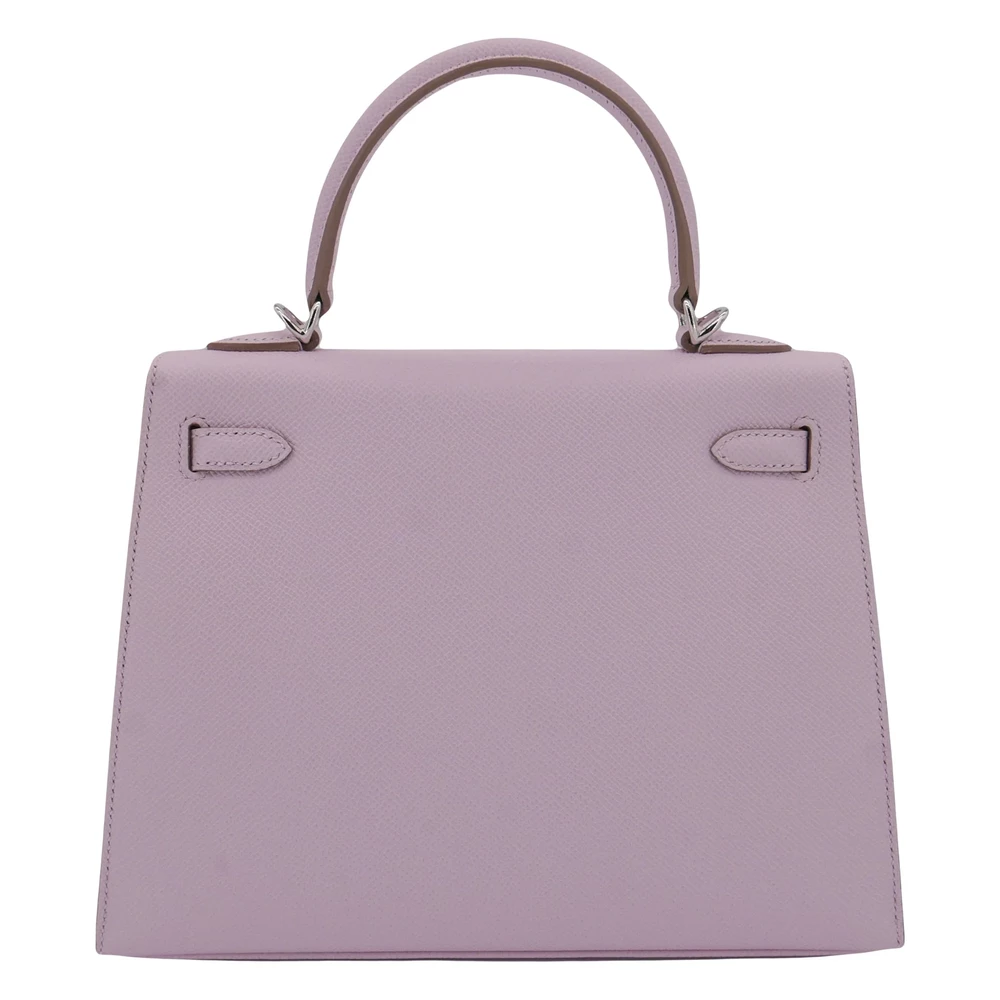 This Hermès style Kelly 25 uses Mauve Pale Epsom. Palladium hardware cools the soft lilac grey. The 25cm sellier design stays pristine and structured. Stain resistant leather cleans easily. Pairs with silver or pastel outfits. Your perfect daytime event companion. Subtle luxury for refined tastes.
