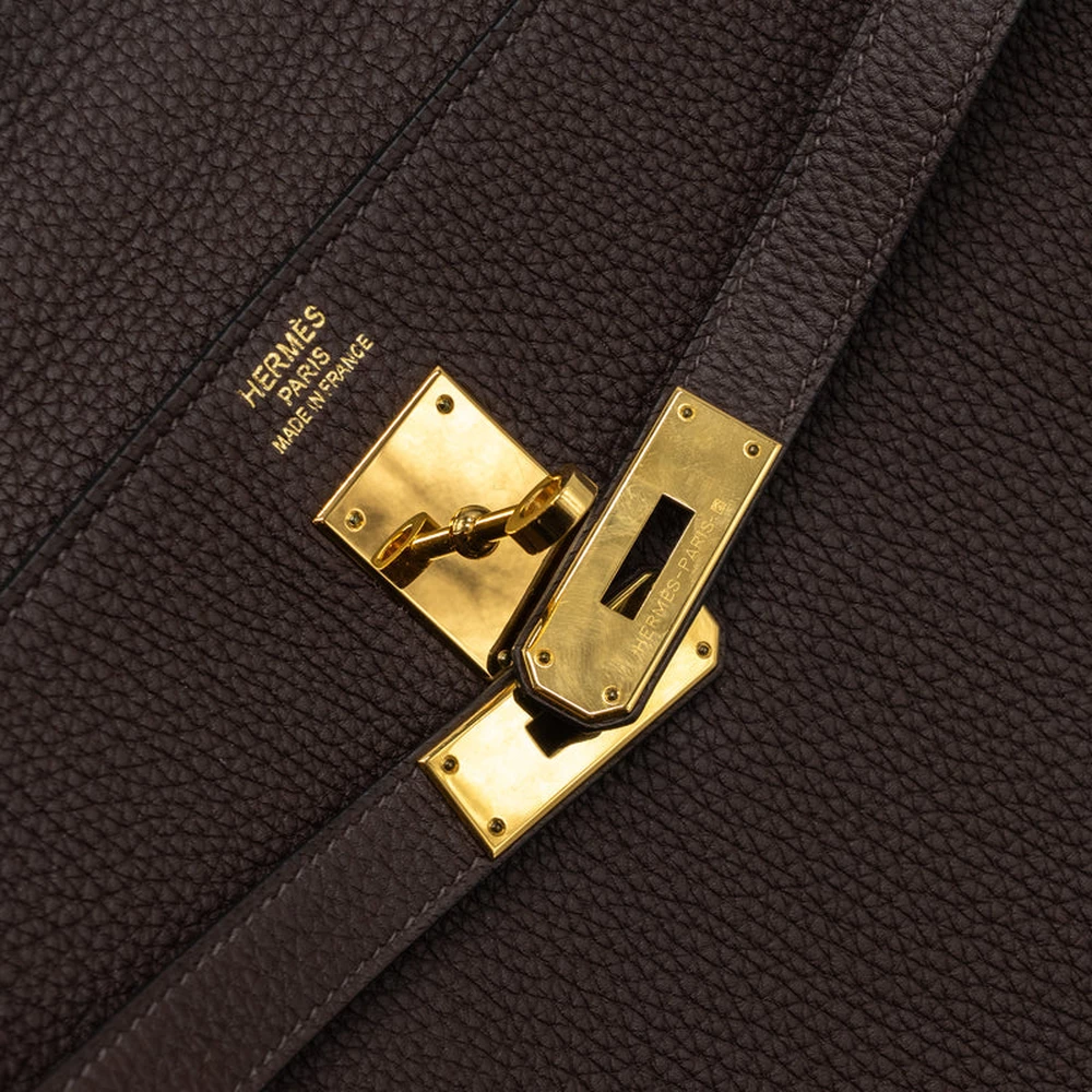 The Hermès Kelly 35 in Togo Chocolate with gold hardware is a versatile and luxurious piece. The rich, deep brown shade of Chocolate complements the soft Togo leather, offering both durability and style. The gold hardware enhances the warm tones, adding a touch of luxury to the bag. Its structured silhouette and top handle make it a classic choice for formal and everyday settings. Spacious enough for all your essentials, this bag exudes sophistication. It’s an iconic piece for those who appreciate timeless elegance.