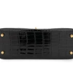 This Hermès inspired Kelly 25 features Alligator Black leather for sleek, exotic texture. Gold hardware elevates the sharp Sellier lines and clasp. The 25cm size holds phones, cosmetics, and essentials. Alligator leather resists wear and stays glossy. Pair with evening gowns or tailored suits for luxe contrast. Built for galas, dinners, or collector’s displays. Timeless opulence.