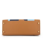 This Hermès Kelly Graphie 28 mixes Epsom, Clemence, and Chèvre leathers in bold multicolored panels. Permabrass hardware adds retro charm to its artsy design. The 28cm size fits laptops, journals, and creative tools. Durable materials resist daily wear. Style with solid colors to let the bag shine. Perfect for festivals or artistic events. Vibrant and unforgettable.