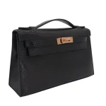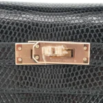 Hermès Kelly Pochette Clutch Black Shiny Lizard Rose Gold Hardware