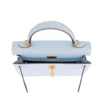 This Hermès inspired Kelly 25 Sellier features Bleu Brume Epsom leather in misty blue grey tones. Gold hardware highlights the crisp Sellier stitching and structured frame. The 25cm size fits laptops, notebooks, and essentials. Epsom leather resists scratches and stays polished. Pair with charcoal greys or silver accents for serene contrast. Perfect for offices, travel, or minimalist elegance. Calm confidence, redefined.