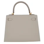 This Hermès inspired Kelly 25 Sellier combines Craie Epsom leather with HSS contrast for soft minimalism. Gold hardware accents the Sellier stitching and structured frame. The 25cm size fits laptops, planners, and essentials. Epsom leather stays scratch resistant and polished. Pair with pastels or neutrals for understated elegance. Built for offices, travel, or timeless wardrobes. Quiet power, artisan crafted.