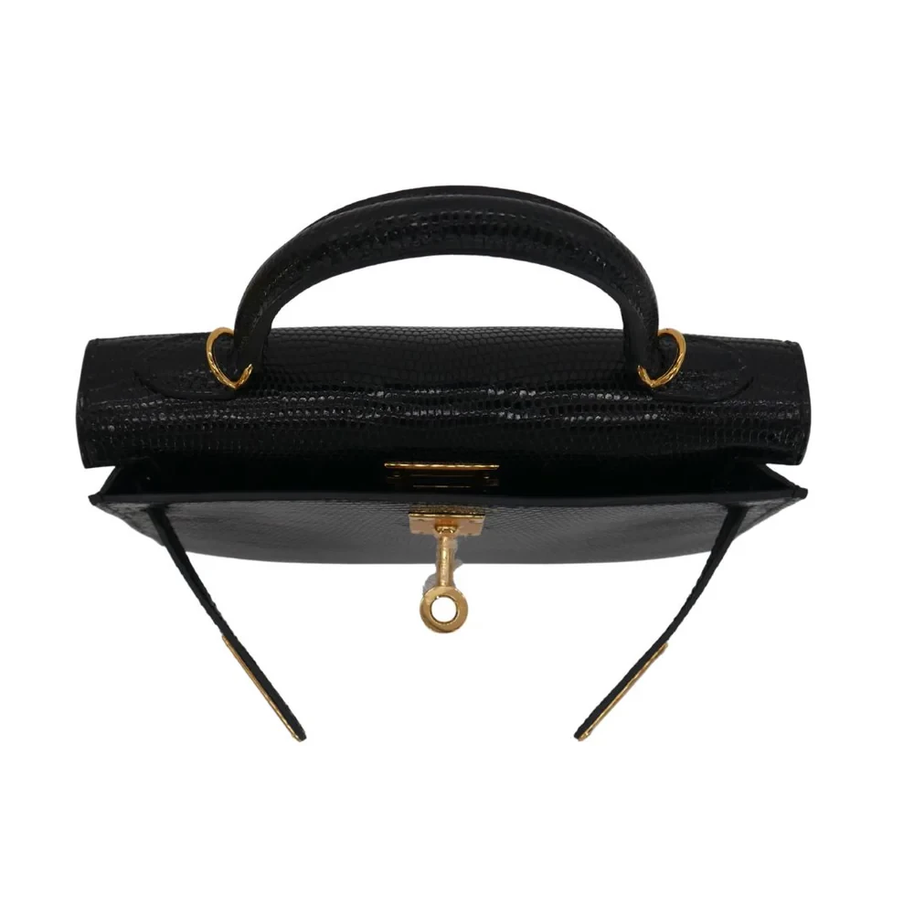 Mirror Quality Hermès Replicas – Kelly II Sellier Mini Black Shiny Lizard Gold HW