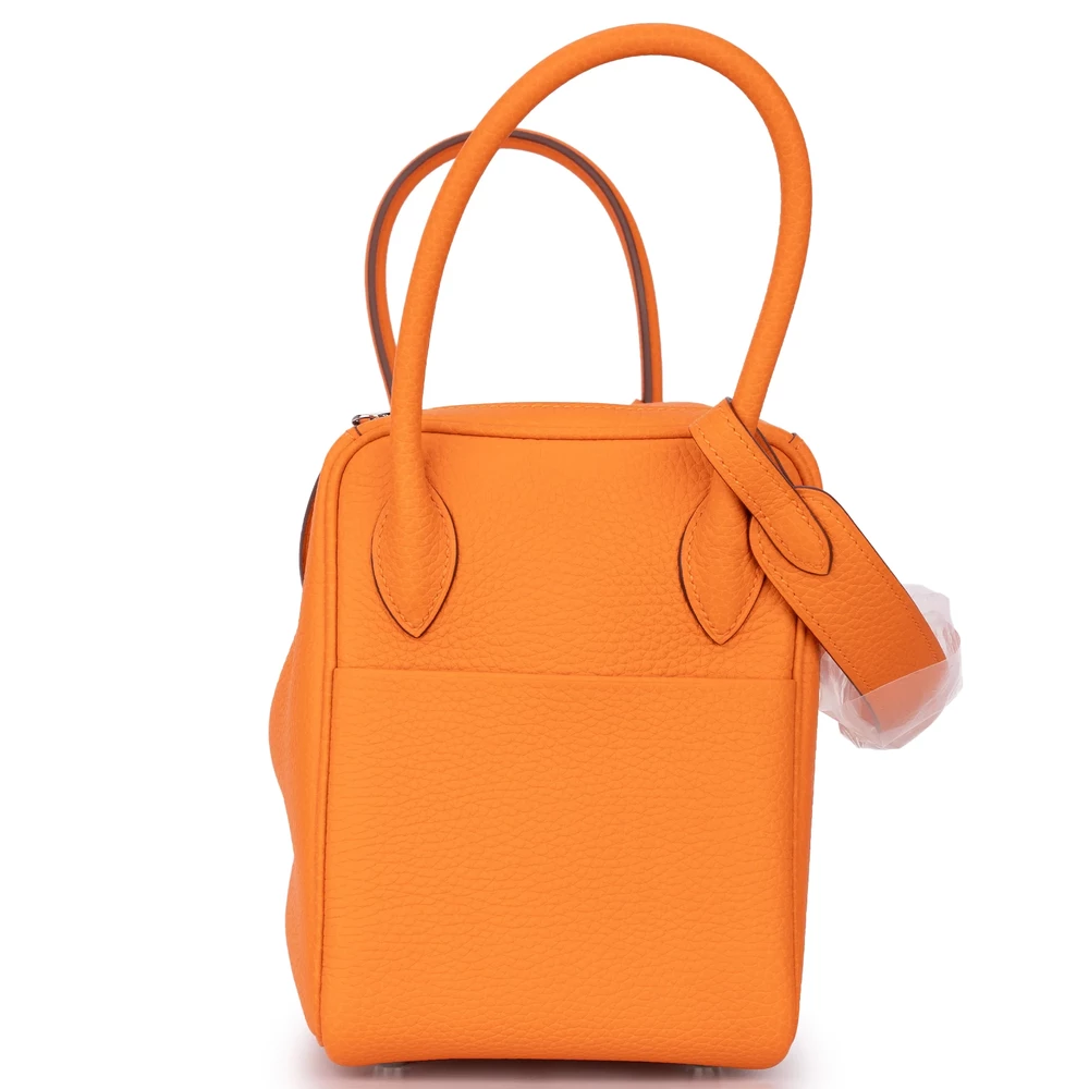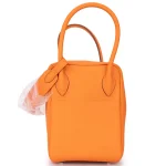This Hermès Lindy 26 pops in Clemence Orange leather for vibrant, sunny style. Palladium hardware balances the bold color. The 26cm size fits tablets, makeup, and daily essentials. Soft Clemence leather resists scratches and ages gracefully. Pair with neutrals or summer whites for fun contrast. Ideal for vacations or casual outings. Joyful and practical.