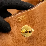 This Hermès Lindy 30 in Clemence leather and Gold with gold hardware combines the brand’s classic design with a luxurious touch. The soft, warm gold leather paired with gold hardware creates an elegant look, while the spacious interior makes it a perfect bag for everyday use, offering both style and functionality.