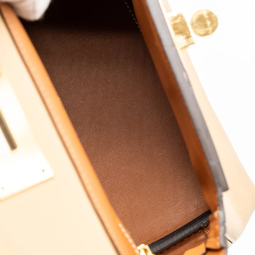 This Hermès Mini 24/24 21 Bag in Evercolor Swift leather and Chai Fauve with gold hardware is a sophisticated and timeless accessory. The warm brown leather combined with the gold hardware creates an elegant look that’s perfect for daily wear. Its compact design ensures practicality without sacrificing style, making it a must have piece for any wardrobe.