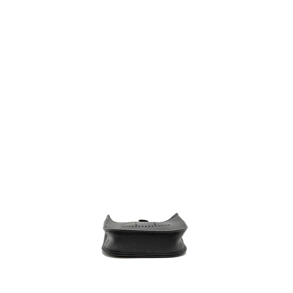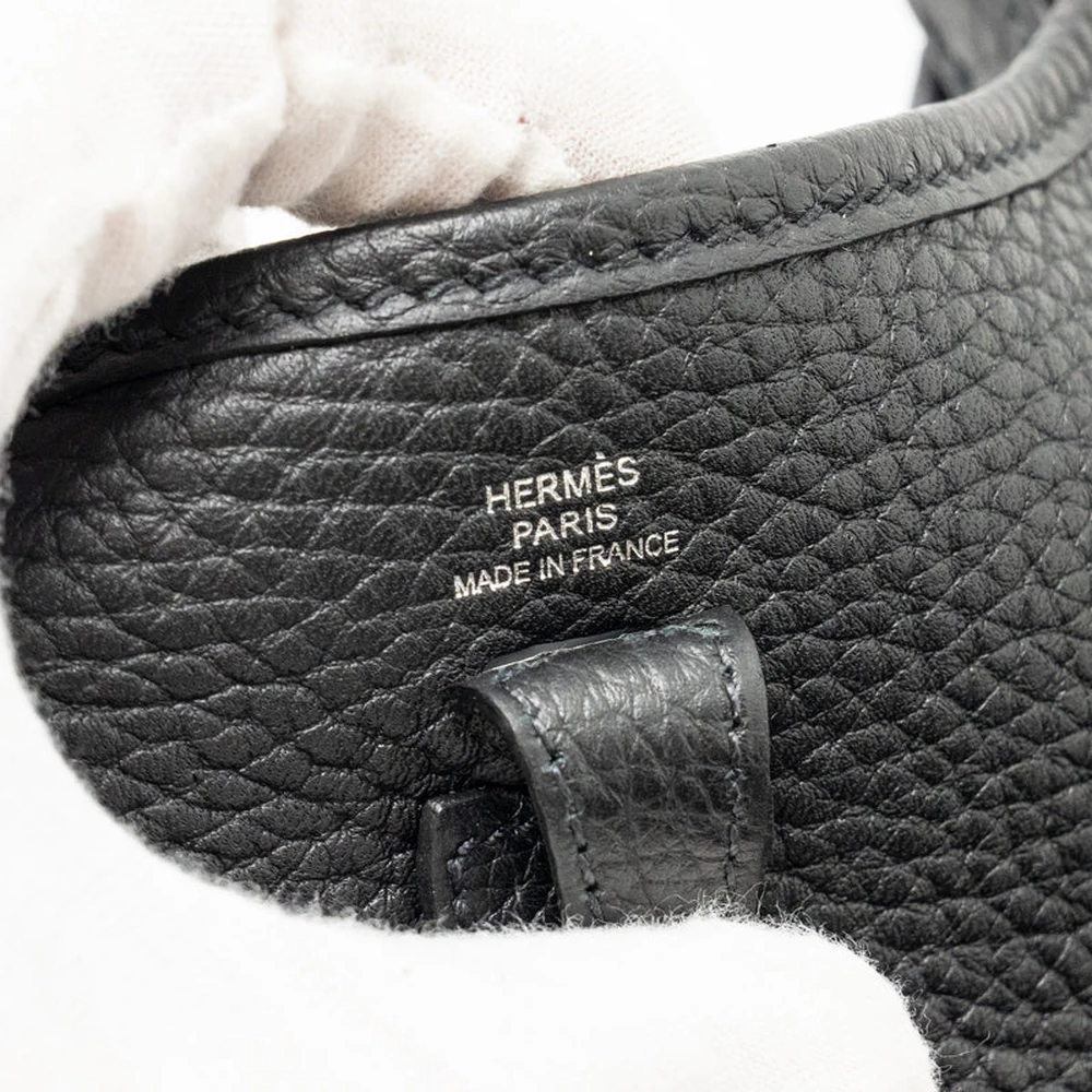 This Hermès Mini Evelyne in Clemence leather in Black with Silver Hardware stamp Z offers a classic and versatile design. The sleek Black color, paired with the soft Clemence leather, creates a timeless and sophisticated look. Silver hardware completes the modern appeal of this compact bag.