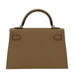 This Hermès Dupe Kelly Mini features Poussiere Epsom in soft grey. Palladium hardware keeps it modern. The mini size fits essentials neatly. Epsom leather resists stains. Perfect for minimalist outfits. Your perfect understated luxury companion. Quiet elegance for refined tastes.