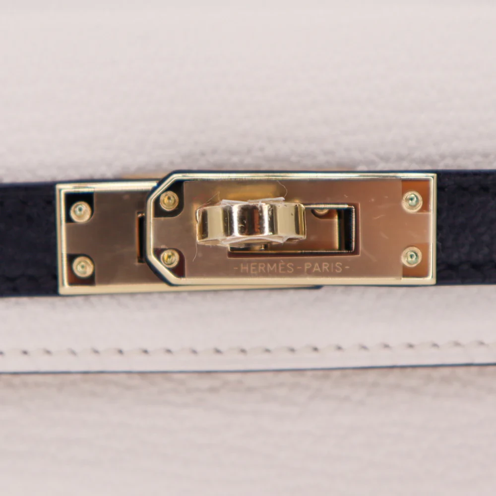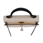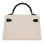 This Hermès Replica Kelly Mini combines Nata and Black chèvre leather. Unique Permabrass hardware offers warm antique style contrast. The sellier construction maintains perfect structure despite small size. Two tone design adds visual interest to minimalist outfits. Soft chèvre leather feels luxurious and develops character with use. The neutral color scheme works year round with any wardrobe. Perfect for those who appreciate subtle sophistication. Your perfect versatile companion for both casual and formal occasions. Timeless elegance with modern duality.