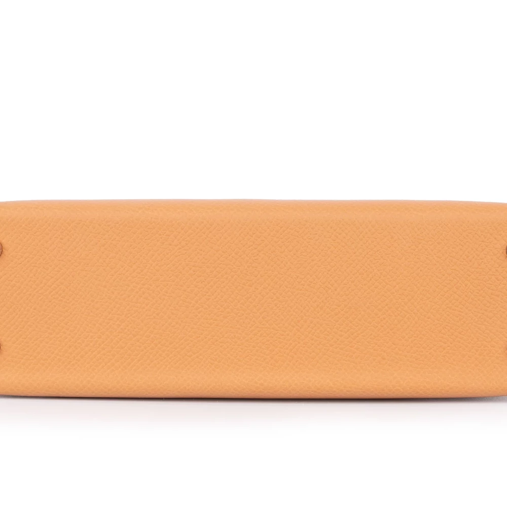 This Hermès Mini Kelly Sellier uses Epsom Veau 37 leather for a unique textured finish. Gold and palladium hardware add mixed metal contrast. The mini size fits tiny essentials like perfume or cash. Durable Epsom leather resists scratches. Pair with neutral tones for understated glamour. Perfect for collectors or special occasions. Quietly luxurious.