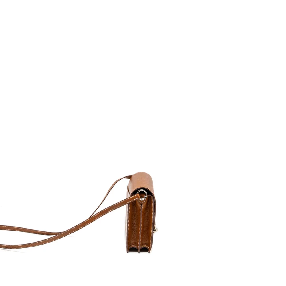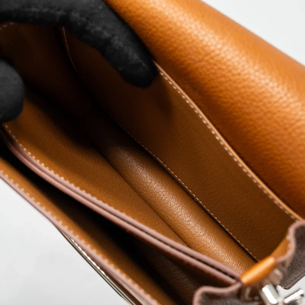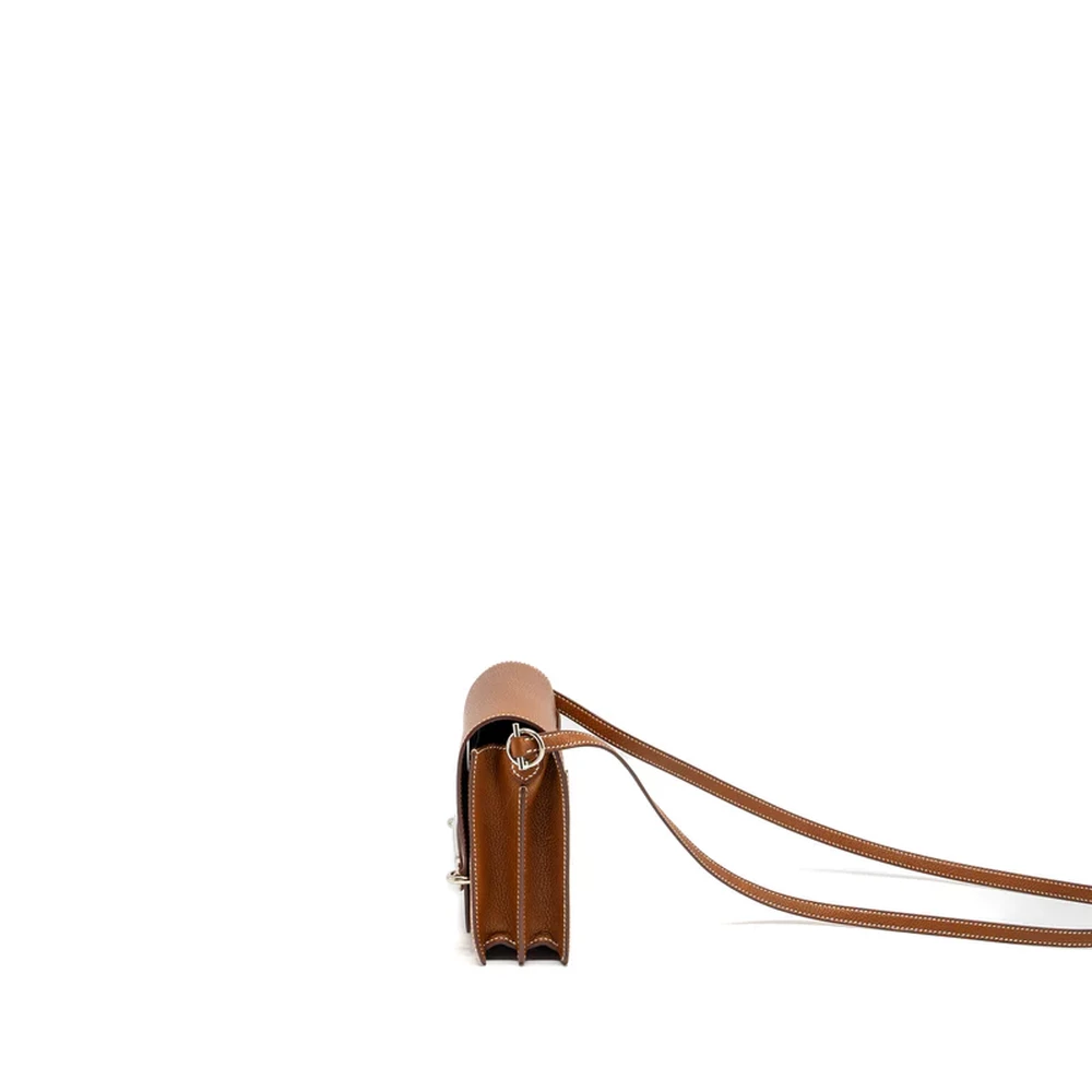 This Hermès Mini Roulis in Barenia Faubourg leather and Fauve with silver hardware offers a luxurious yet understated design. The rich, textured leather paired with the warm fawn color and silver hardware exudes sophistication. The compact size and sleek silhouette make it a perfect companion for day to night styling, offering both elegance and practicality.