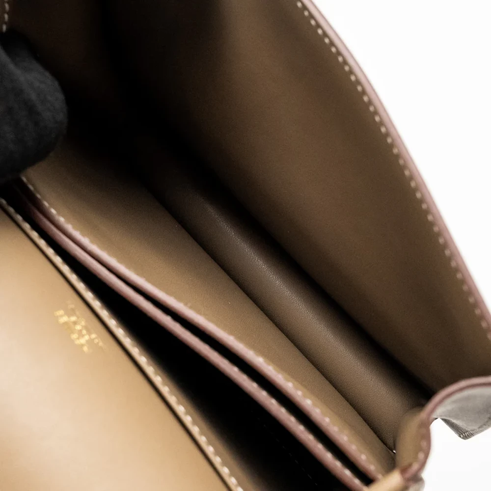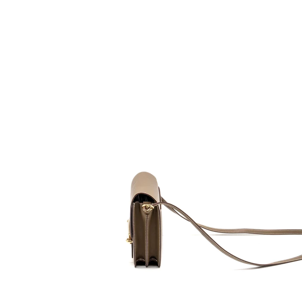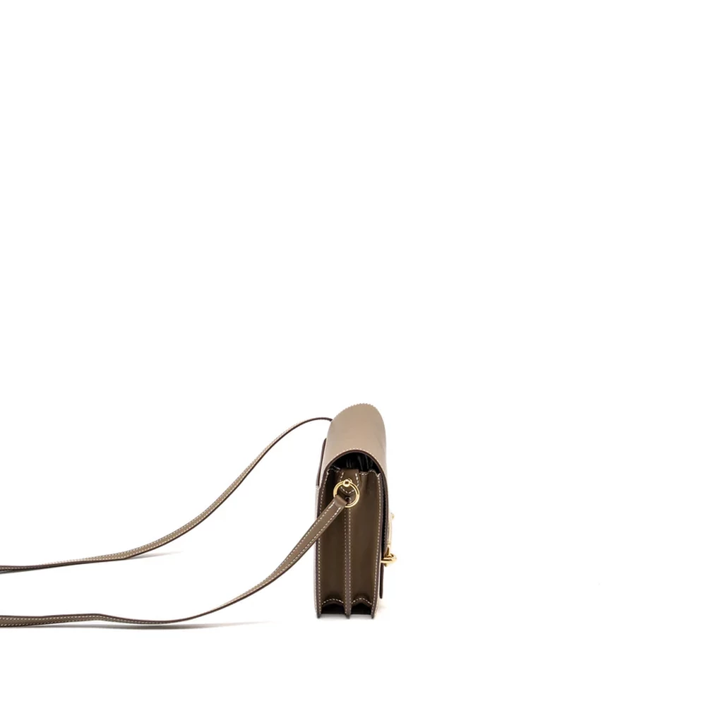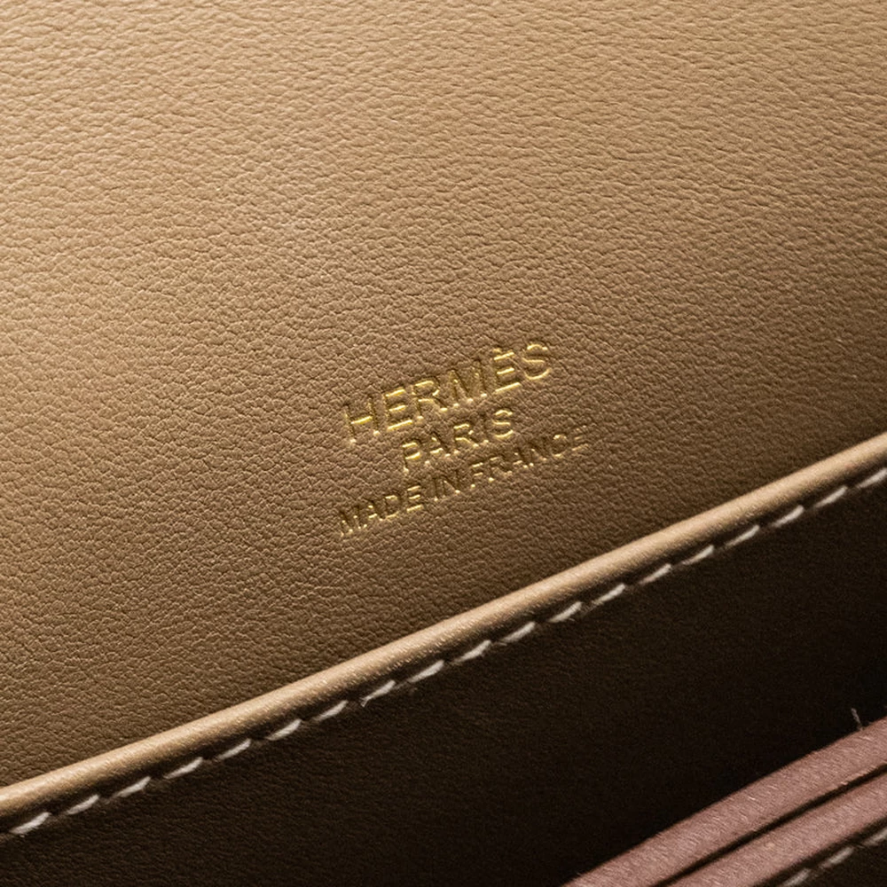 This Hermès Mini Roulis in Swift leather and Etoupe with light gold hardware brings together luxurious leather and subtle tones. The soft grey brown leather, combined with the delicate light gold hardware, offers a classic and versatile look. Its compact size and smooth design make it a perfect choice for everyday elegance.