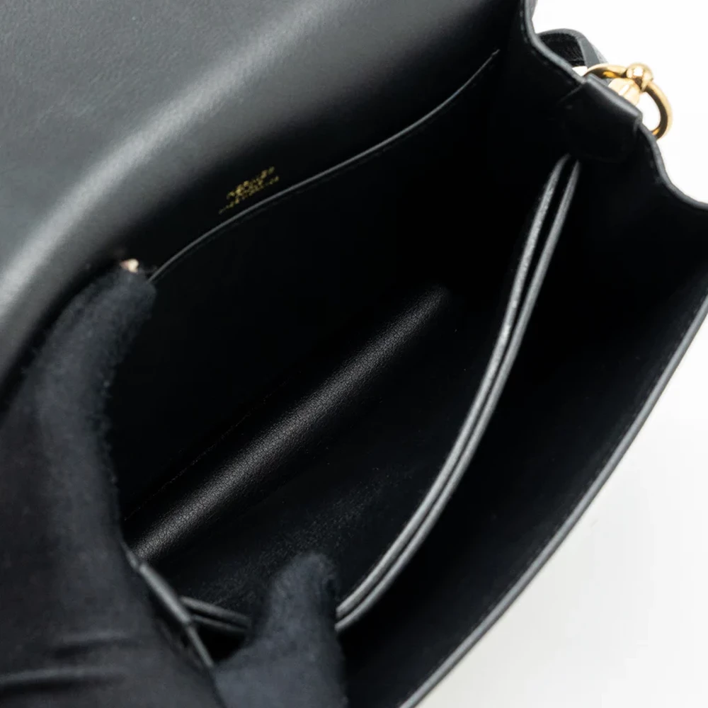 This Hermès Mini Roulis in Swift leather and Black with Gold Hardware stamp Y is the epitome of timeless elegance. The smooth, durable leather in classic black is paired with gleaming gold hardware, exuding sophistication. The compact size makes it an ideal choice for any occasion, offering both style and functionality.
