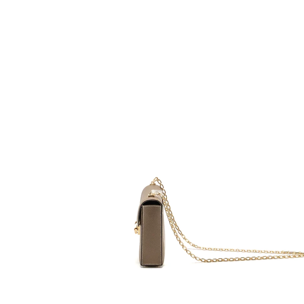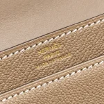 This Hermès Mini Verrou in Chevre Mysore leather and Etoupe with light gold hardware offers a minimalist, elegant design. The neutral Etoupe leather paired with the delicate light gold hardware creates a refined look. Its compact size and sleek structure make it a perfect accessory for those who appreciate both luxury and practicality.