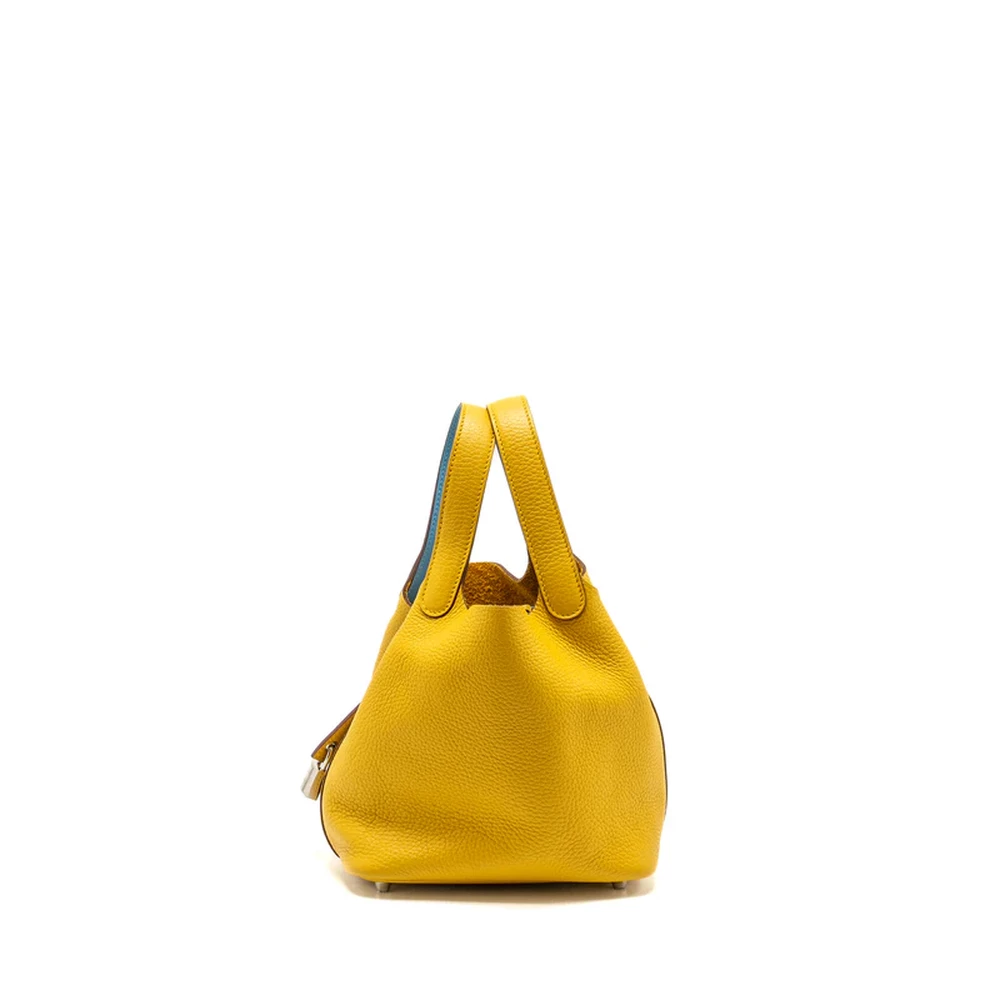 Hermès Picotin 18 Lock Jaune Amber/Blue Du Nord Clemence Silver HW – 1:1 Replica