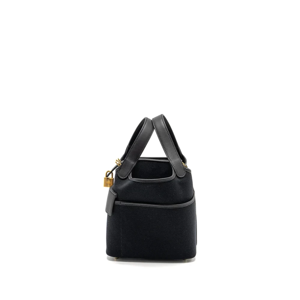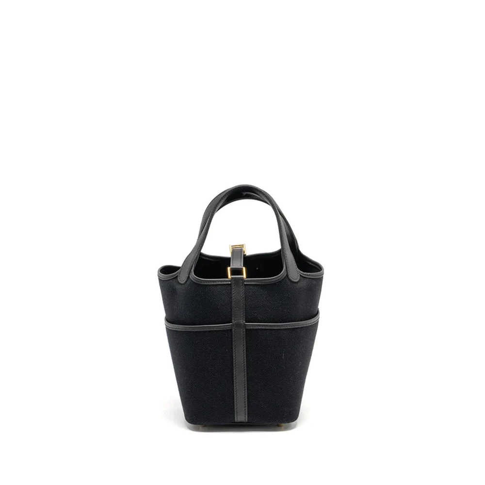 Hermès Picotin Cargo 18 Lock Bag Black Swift Canvas Silver HW