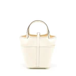 This Hermès Picotin Cargo 18 Lock Bag in Canvas and Swift leather in Ecru Nata with Silver Hardware stamp Z is a versatile and chic piece. The light Ecru Nata canvas contrasts beautifully with the supple Swift leather, offering a soft yet durable structure. Silver hardware adds a modern touch to this practical yet elegant design.