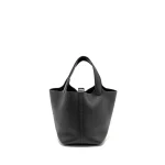 This Hermès Picotin 18 in Clemence leather in So Black with Silver Hardware stamp U offers a sleek and sophisticated design. The deep black Clemence leather creates a timeless, elegant look, while the silver hardware enhances its refined aesthetic. It’s a versatile piece that works well for any occasion.
