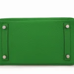 This Hermès Birkin 25 Retourne features Togo Bamboo Verso/Caramel leather for reversible green and caramel contrast. Palladium hardware accents the slouchy, relaxed silhouette. The 25cm size holds phones, cards, and small essentials. Togo leather resists scratches and stays lightweight. Pair with neutrals or earth tones for versatile elegance. Ideal for casual outings, travel, or everyday use. Dual tone luxury redefined.