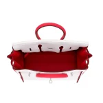 This Hermès inspired Birkin 25 HSS mixes White and Rose Extreme Clemence leather for soft contrast. Brushed palladium hardware adds modern minimalism. The 25cm size holds essentials securely with structured elegance. Supple Clemence leather resists scratches. Pair with neutrals or floral prints for romantic flair. Lightweight and perfect for spring weddings. Delicate yet practical.