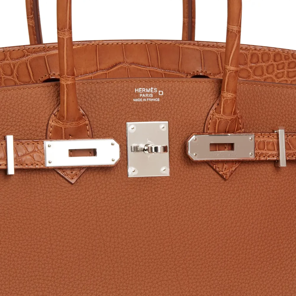 Hermès Birkin 30 Touch Gold Togo/Matte Alligator Palladium HW – Premium Replica