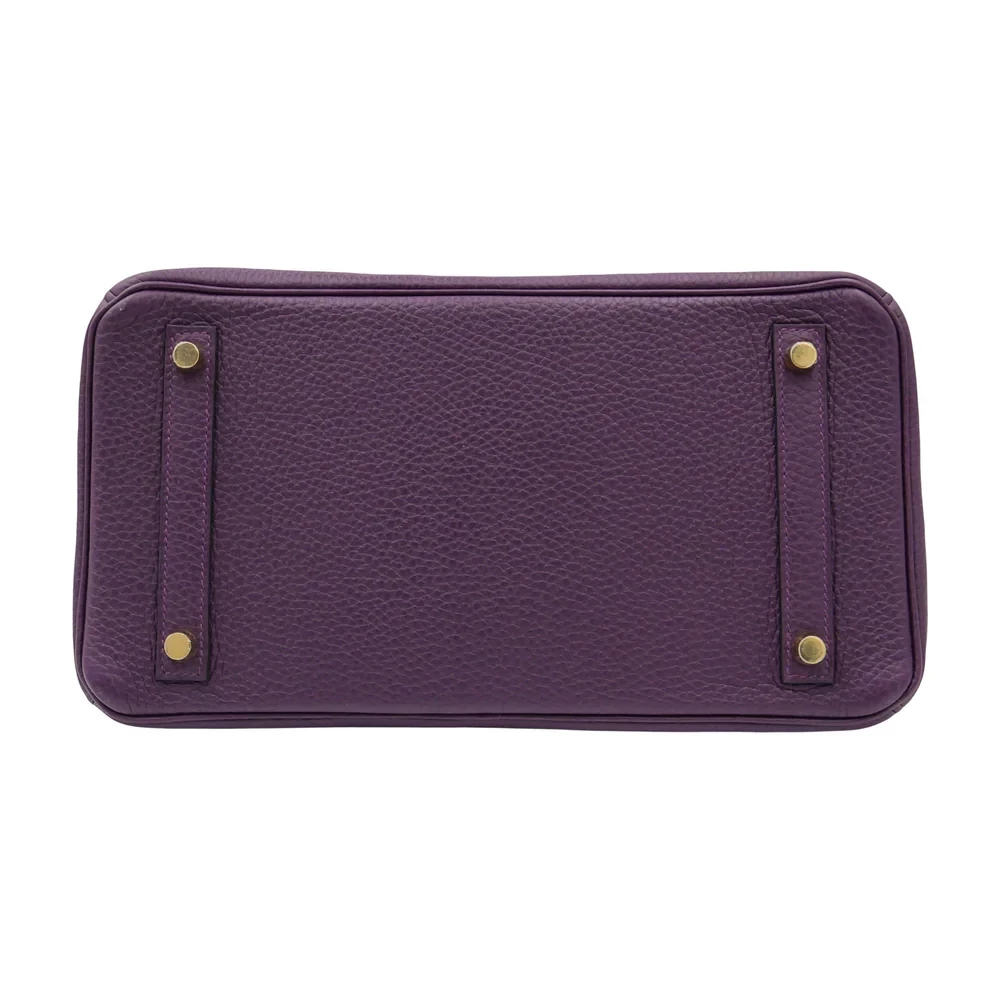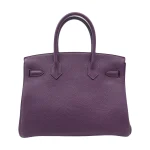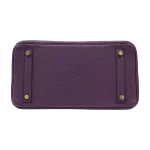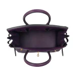 This Hermès inspired Birkin 30 features Cassis Togo leather, a rich blackcurrant purple hue. Gold hardware elevates the 30cm design with regal warmth. Soft Togo leather resists scratches and stays supple. Roomy enough for work essentials or travel gear. Pair with neutrals or metallics for evening allure. Luxurious depth in every stitch.