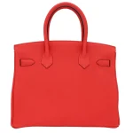 This Hermès inspired Birkin 30 glows in Capucine Togo leather, a warm burnt orange hue. Gold hardware elevates the 30cm silhouette with timeless glamour. Soft Togo leather resists scratches while retaining its shape. Roomy enough for work essentials or weekend adventures. Pair with neutrals to let the Capucine hue shine. Lightweight and versatile for daily use. Autumn elegance in bag form.
