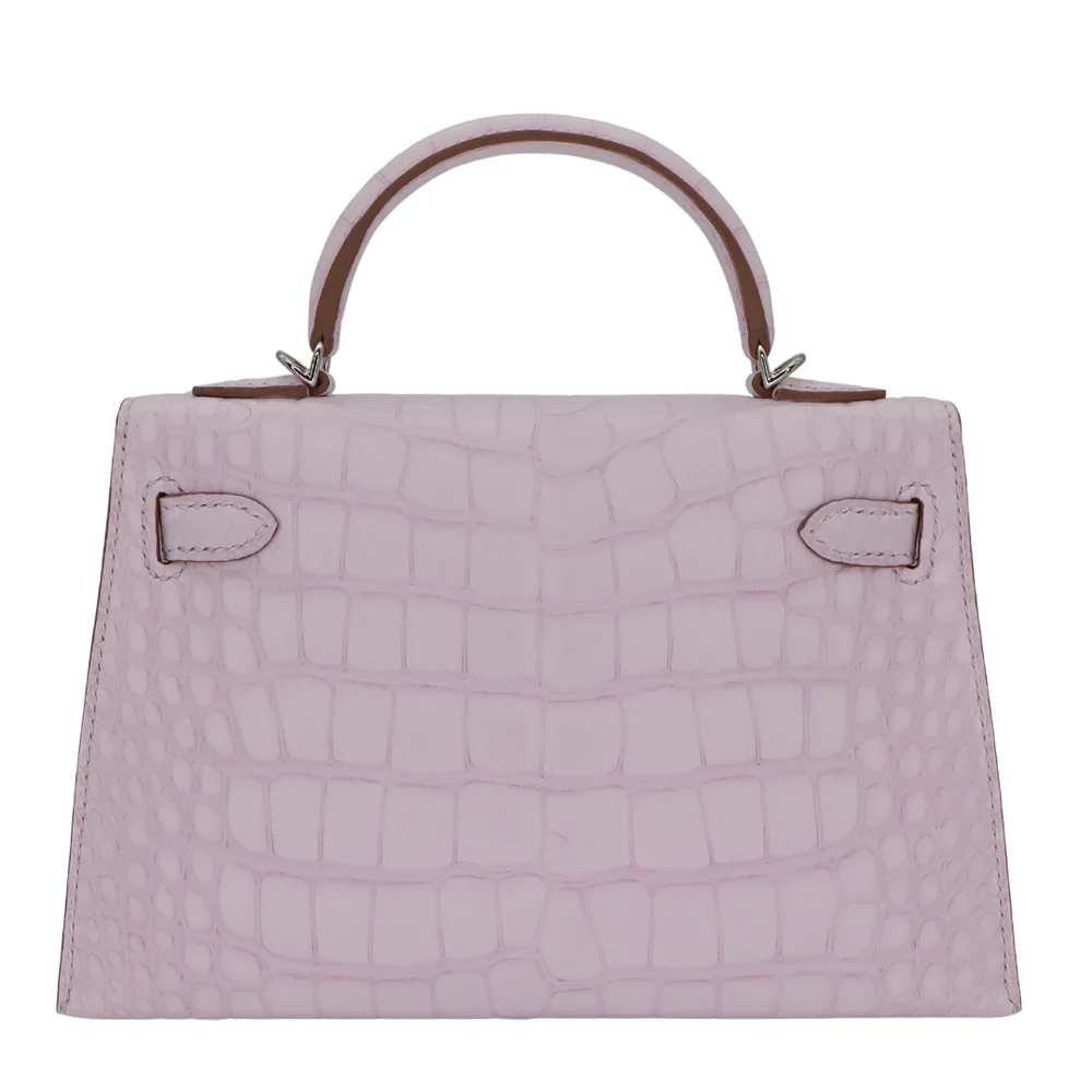 High-End Hermès Inspired – Kelly II Sellier Mini Mauve Pale Matte Alligator Palladium HW
