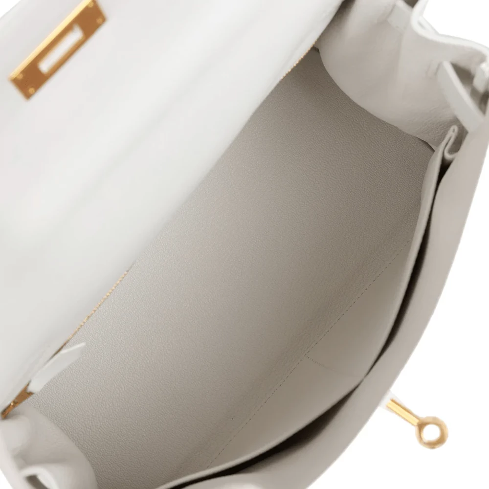 High-End Hermès Inspired – Kelly 28 Retourne White Evercolor Gold HW