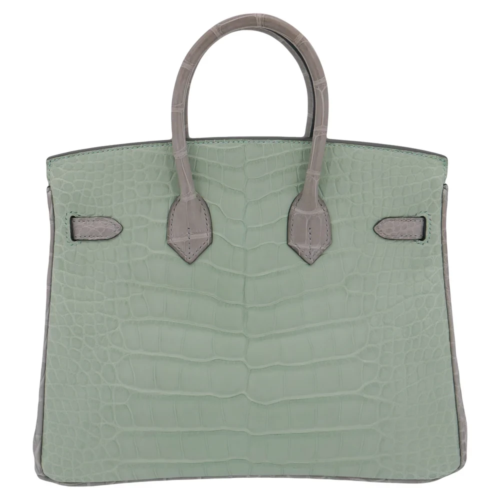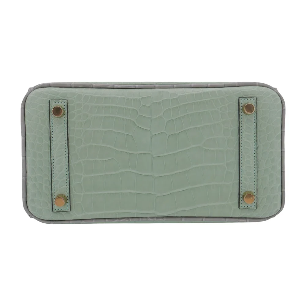High-End Hermès Inspired – Birkin 25 HSS Vert D’eau/Gris Perle Matte Alligator Brushed Gold HW
