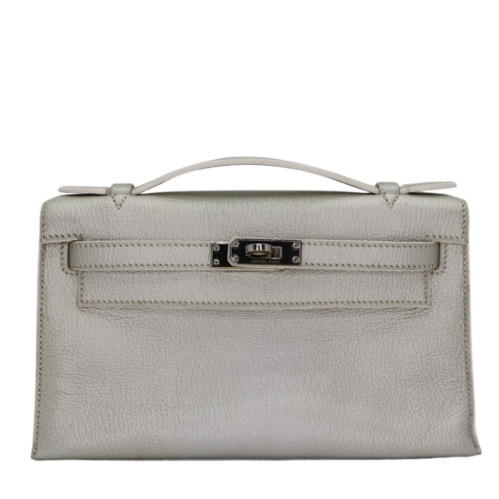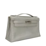High-Quality Hermès Kelly Pochette Replica – Silver Metallic Swift Palladium