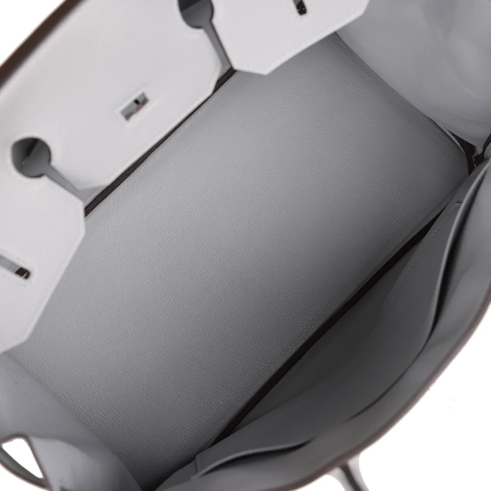 This Hermès inspired Birkin 35 uses Bleu Glacir Togo leather for a cool, icy blue finish. Palladium hardware highlights the pebbled texture and slouchy shape. The 35cm bucket holds magazines, water bottles, and daily necessities. Togo leather hides minor scratches and stays lightweight. Team with winter whites or silver accessories for frosty chic. Ready for commutes, shopping, or casual outings. Understated luxury reimagined.