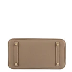This Hermès inspired Birkin 25 glows in Etoupe Togo leather, a warm grey beige hue. Gold hardware adds subtle contrast to the 25cm design. Soft Togo leather resists scratches and ages gracefully. Compact yet fits essentials like cards and keys. Pair with pastels or metallics for versatility. Timeless sophistication for daily use.