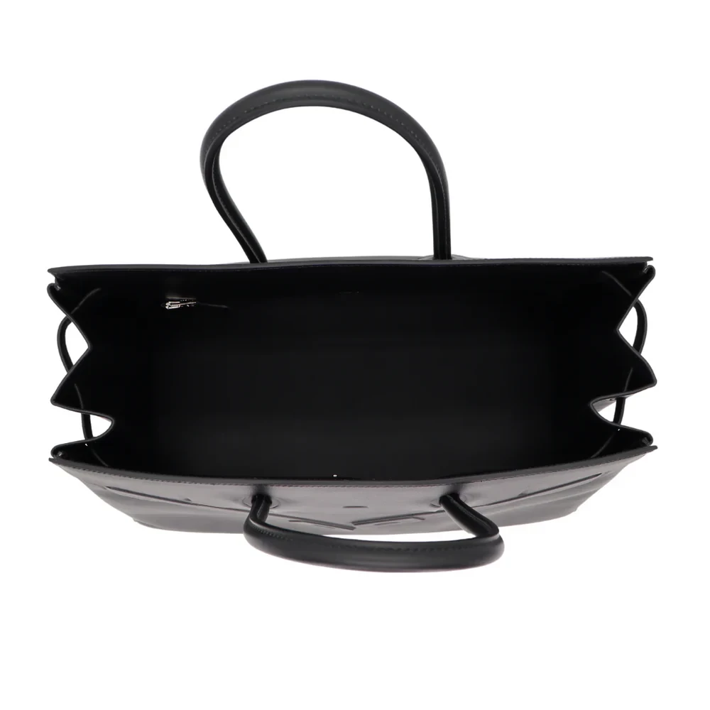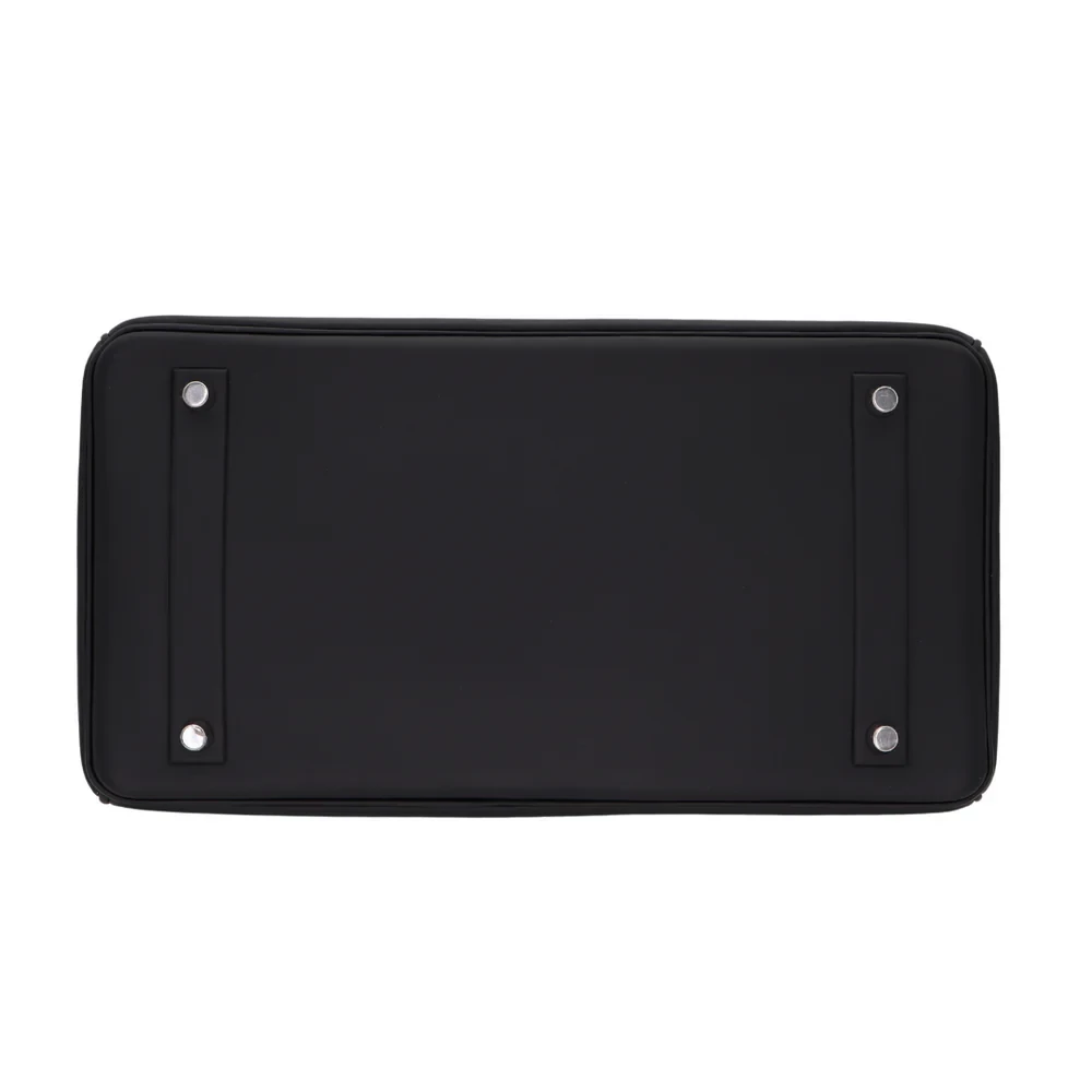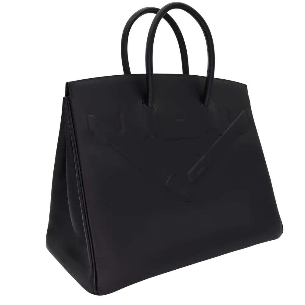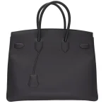 This Hermès inspired Birkin 35 Shadow Black Swift leather offers a sleek, hardware free design. The 35cm size fits work essentials or weekend gear effortlessly. Soft Swift leather resists scratches and feels buttery. Pair with all black outfits for stealthy glamour. Lightweight despite its oversized silhouette. Minimalist luxury for rebels. A monochromatic masterpiece.