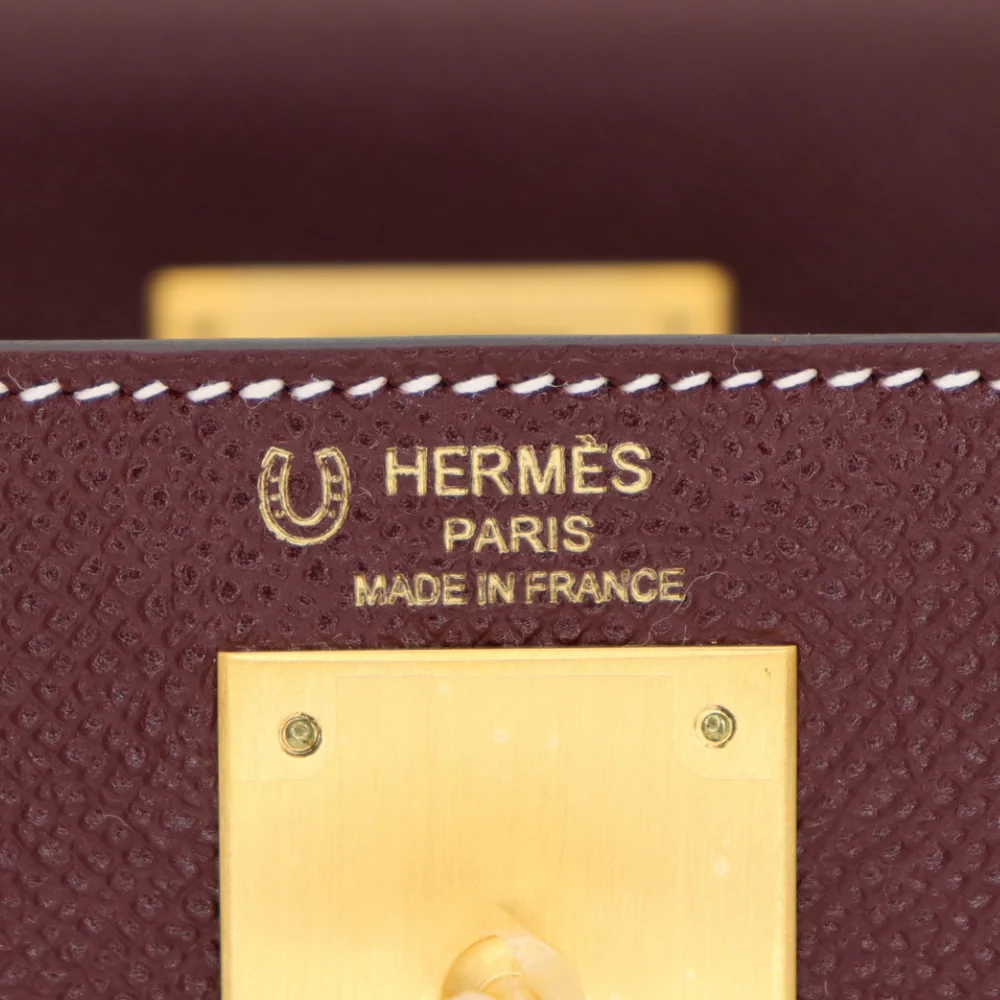 Mirror Quality Hermès Replicas – Kelly 28 HSS Sellier Bordeaux/Craie Epsom Brushed Gold HW