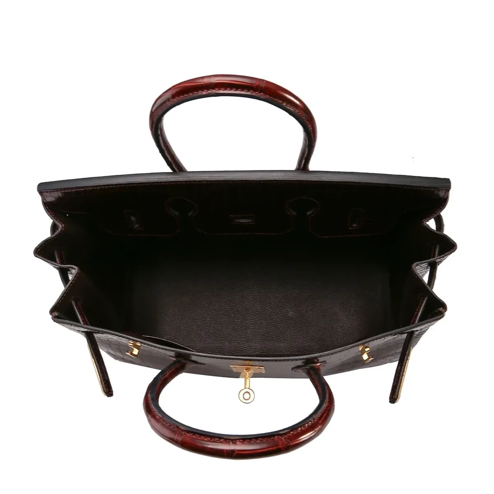 Premium Birkin 35 Replica – Bordeaux Porosus Crocodile Handbag