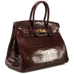 This Hermès Replica Birkin 35 features Bordeaux porosus crocodile leather. Gold hardware warms the deep red. The 35cm size fits work files. Glossy finish wipes clean. Pairs with black outfits. Your perfect executive companion. Powerful luxury for success.