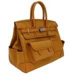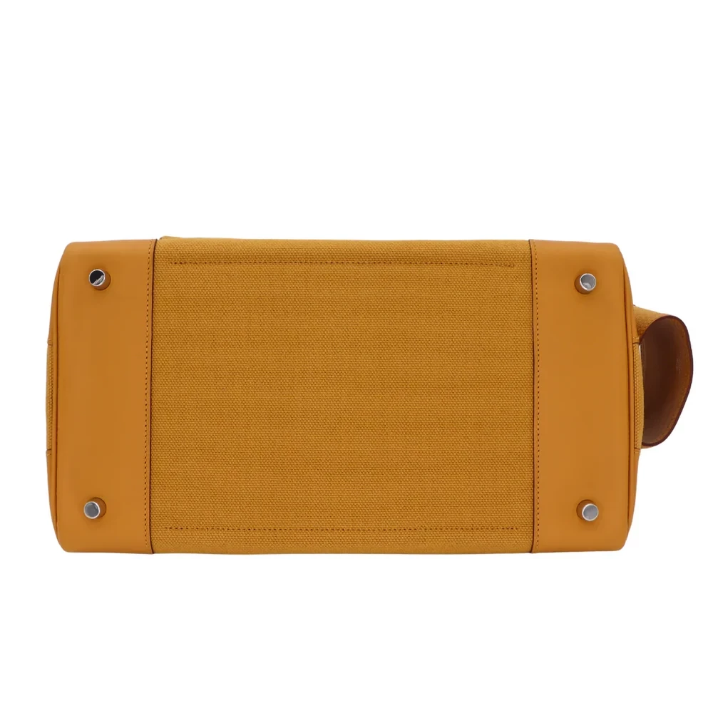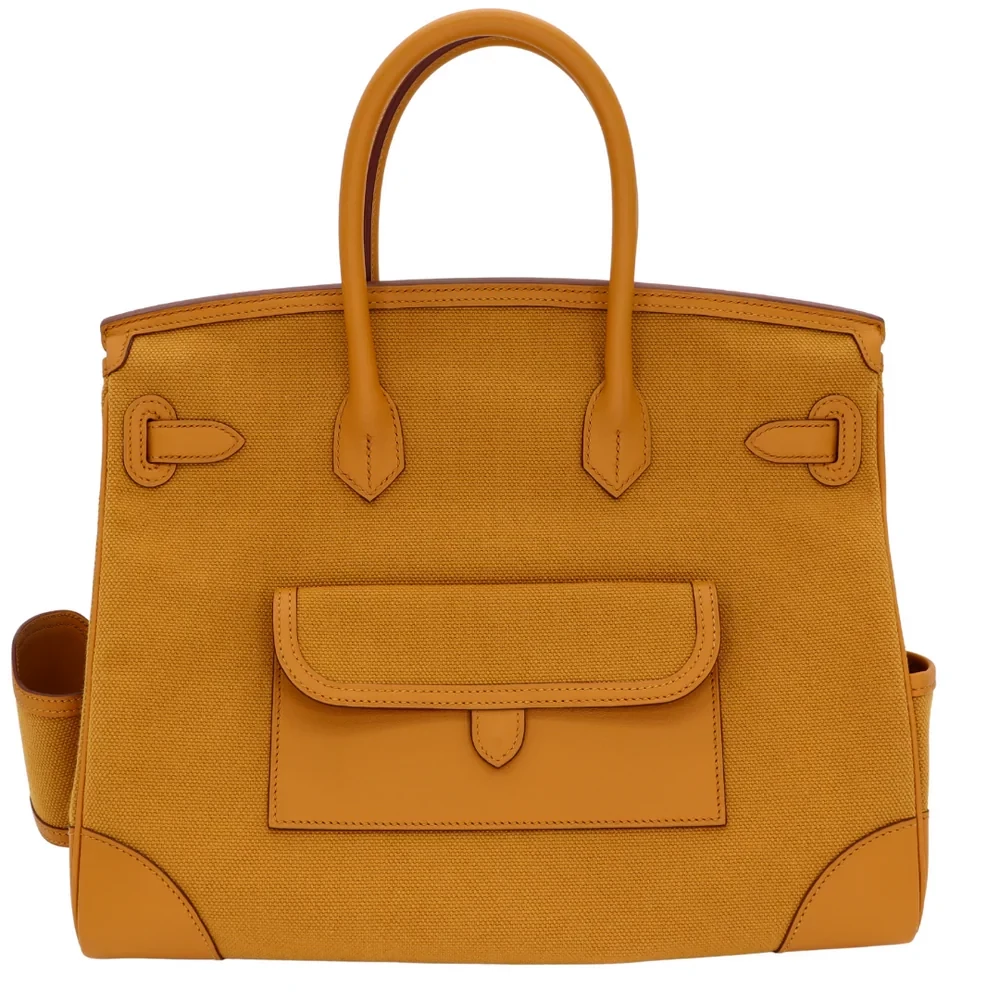 This Hermès style Birkin 35 blends Cargo Sesame canvas and Swift leather for rugged charm. Palladium hardware adds industrial contrast to the 35cm design. Roomy enough for travel gear or gym essentials. Durable materials handle rain or daily wear. Pair with denim or khaki for adventure ready style. Built for explorers who crave luxury.