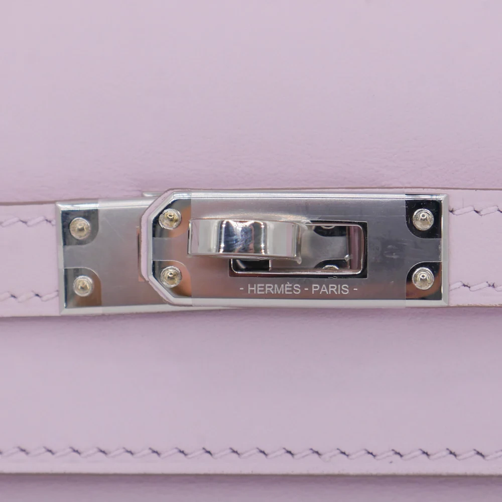 Premium Hermès Replica – Kelly Pochette Mauve Pale Swift Palladium HW