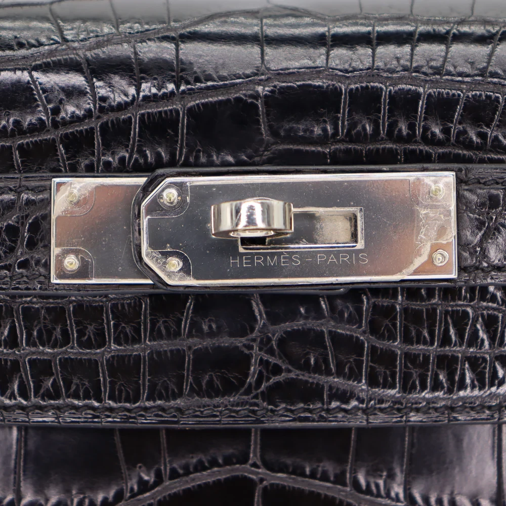 Premium Hermès Replica – Kelly 28 Retourne Black Matte Niloticus Crocodile Palladium HW