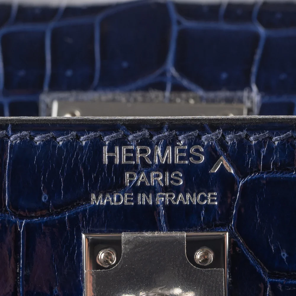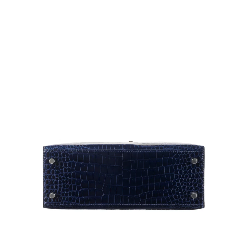 Kelly 25 Sellier in Bleu Indigo Shiny Niloticus Crocodile